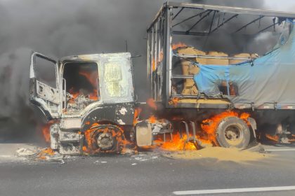 Un camión en llamas se reportó en plena ruta 5 Sur, a…