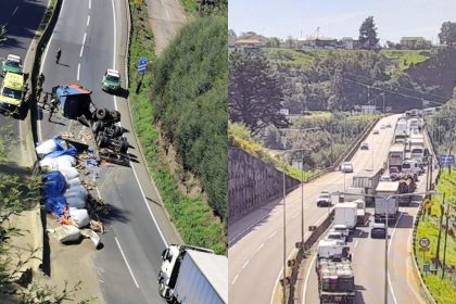 Congestión vehicular tras volcamiento de un camión en el puente Malleco de Collipulli